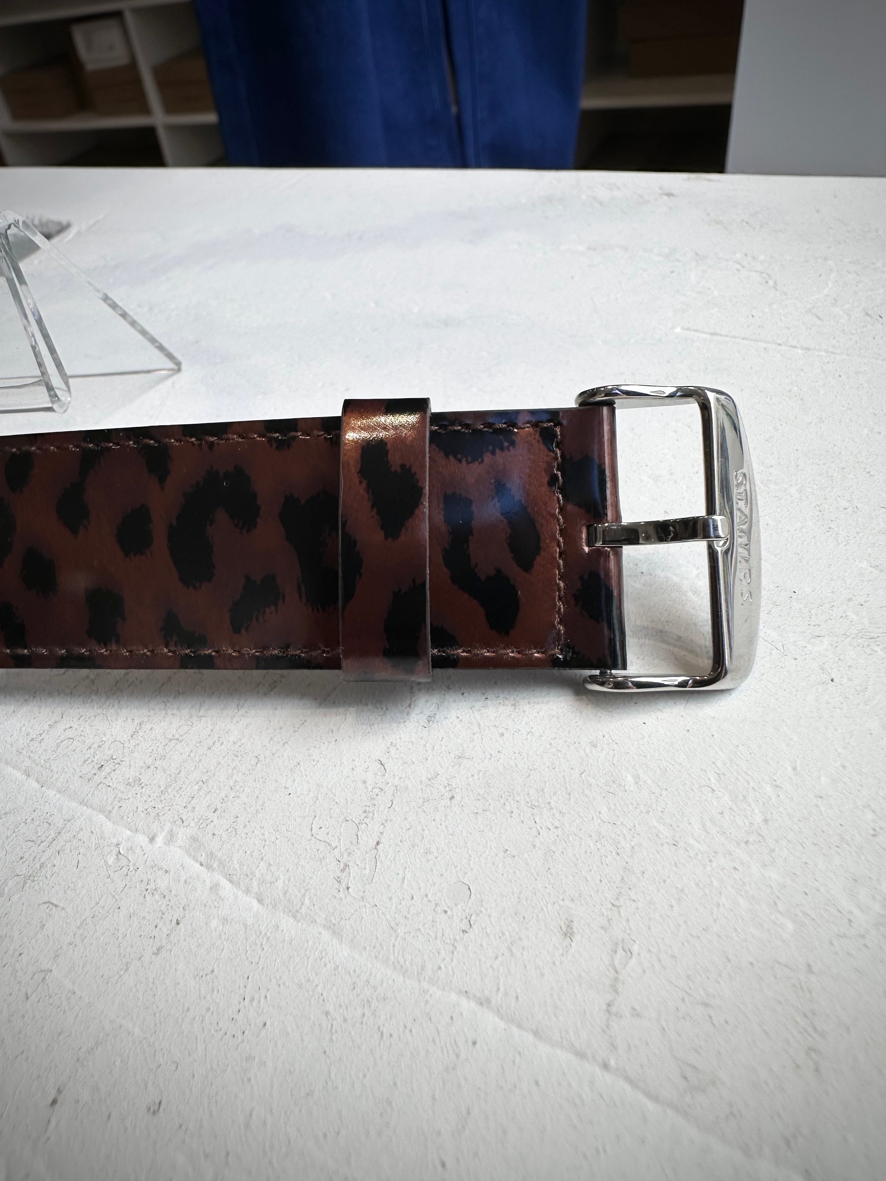 Audacieux et élégant, le bracelet STAMPS Shiny Leo marron léopard est pensé pour celles et ceux qui aiment affirmer leur style. Avec son imprimé animalier et sa finition brillante façon laque, il habille le poignet d’une touche mode unique, entre sophistication et esprit sauvage. Un accessoire parfait pour donner du caractère à votre montre STAMPS et à vos tenues du quotidien.