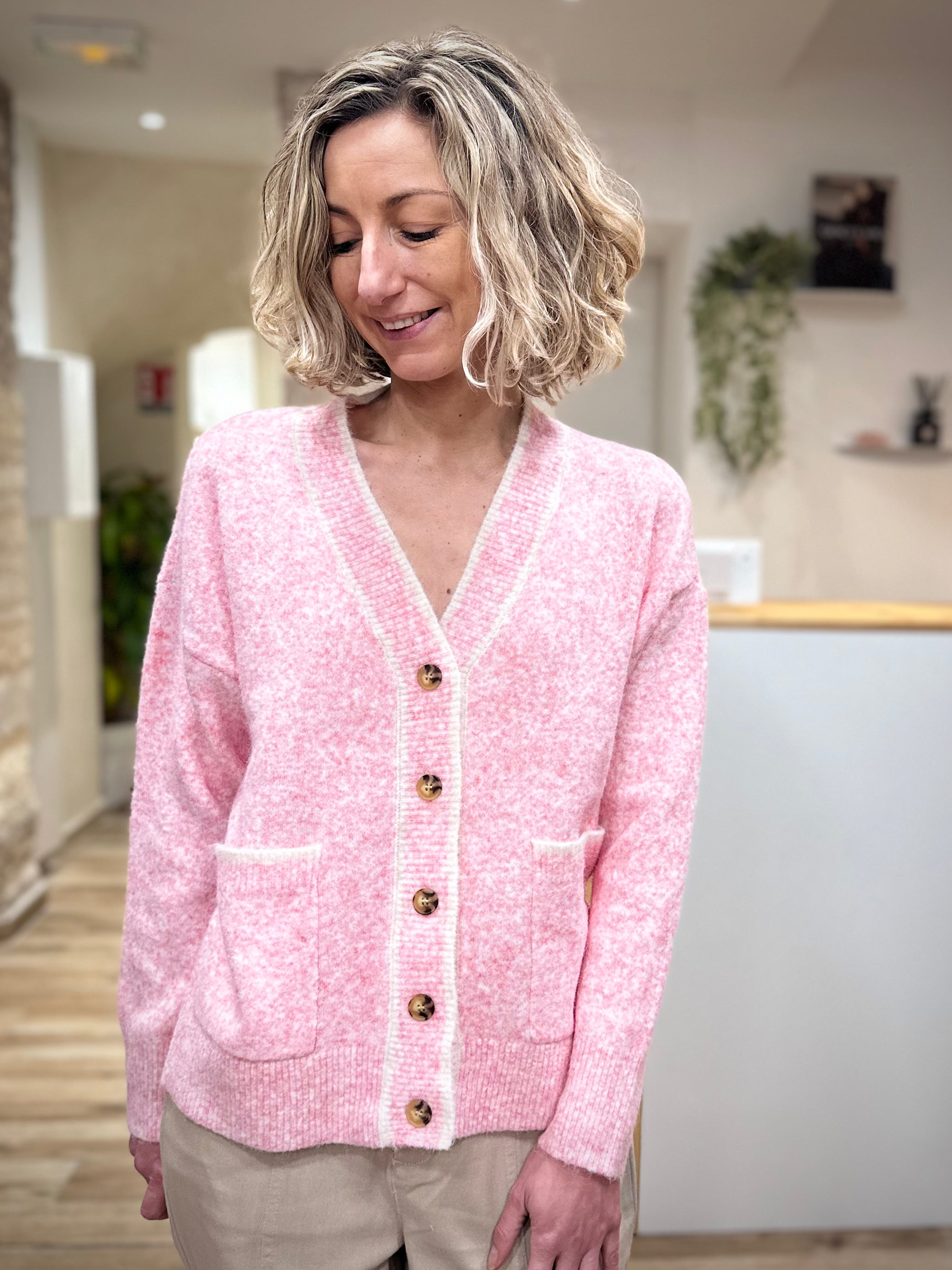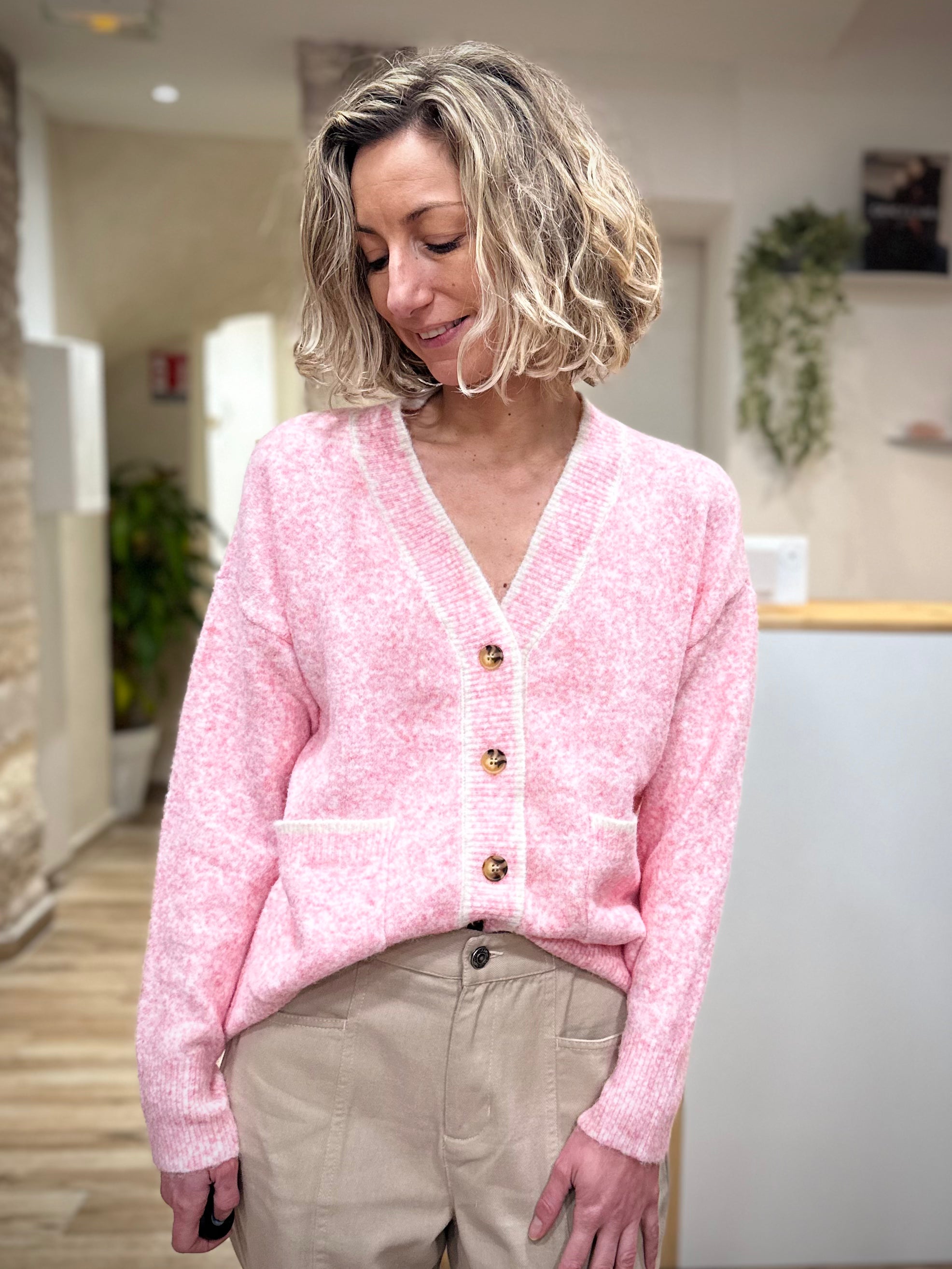 Facile à associer, le cardigan KENDRA rose chiné se porte aussi bien avec un jean, un pantalon ou une jupe fluide. Ouvert pour un esprit décontracté, fermé pour une allure plus soignée, il accompagne aussi bien vos journées actives que vos moments plus doux. Une pièce essentielle pour composer des looks casual chic tout au long de la saison.