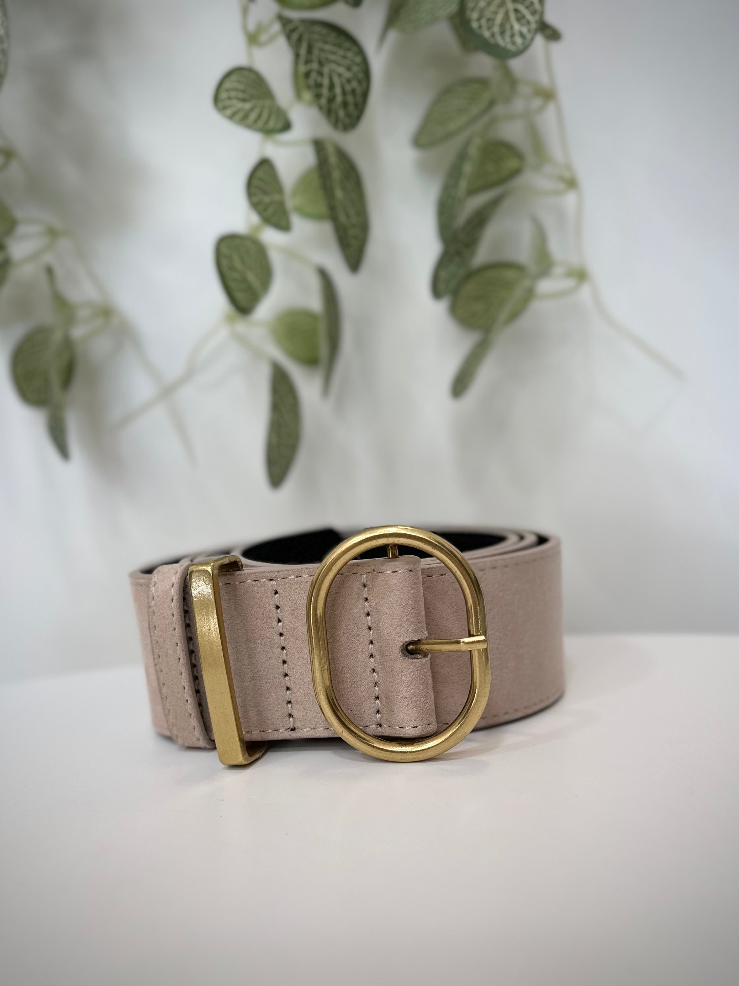 Confectionnée en suédine au toucher velouté, la Swinton séduit par sa douceur et son allure raffinée. Sa boucle en métal doré apporte une touche lumineuse subtile. Son coloris beige sable, neutre et lumineux, s’associe facilement à toutes vos tenues automnales ou basiques de garde-robe.