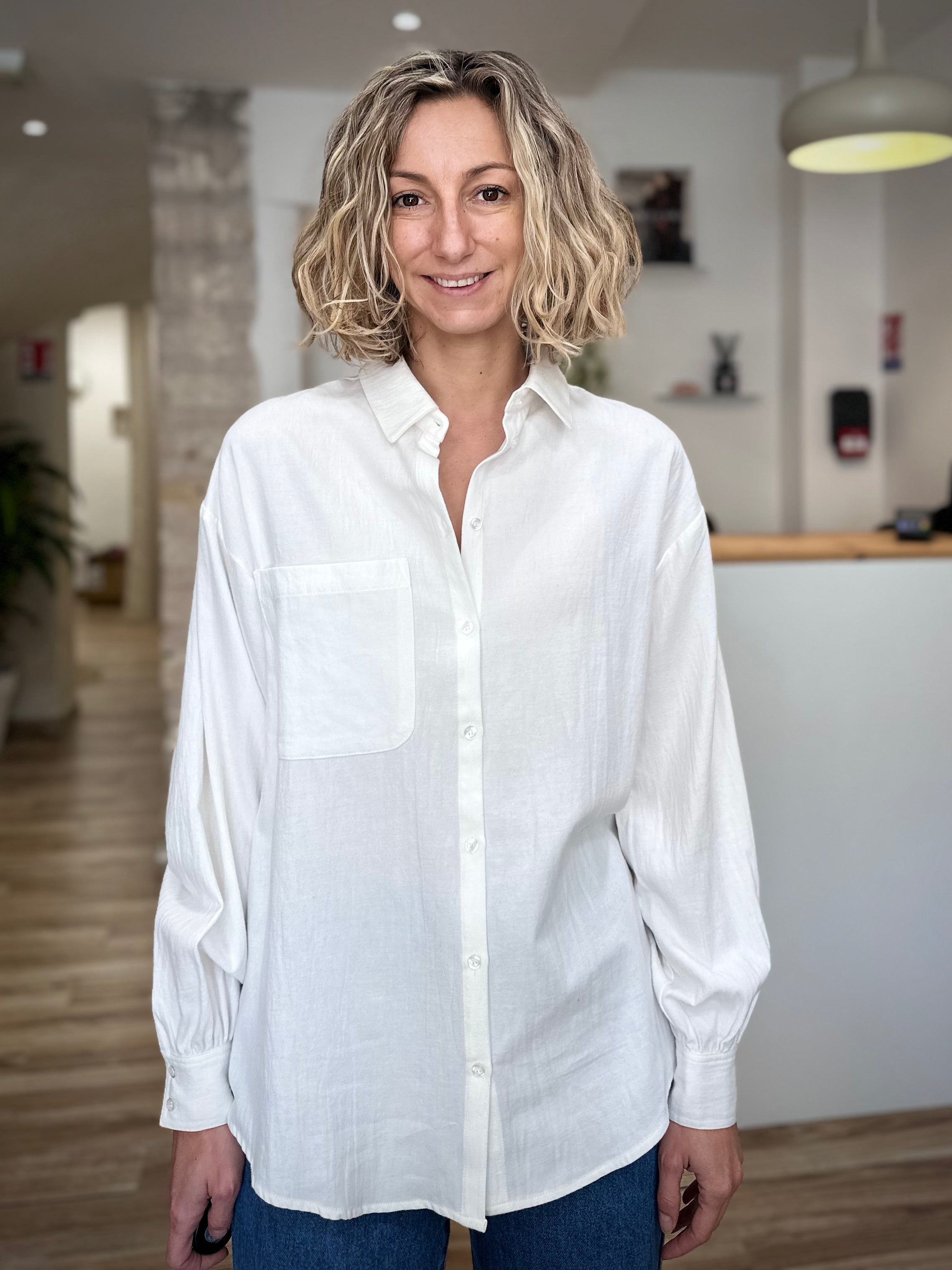 Polyvalente, la chemise Cyliane se porte en sur-chemise sur un pull léger, nouée à la taille pour un look casual chic ou simplement fluide par-dessus un jean pour un style effortlessly élégant. C’est la pièce idéale à attraper chaque matin, qui sublime vos tenues sans effort et devient rapidement un incontournable de votre garde-robe.
