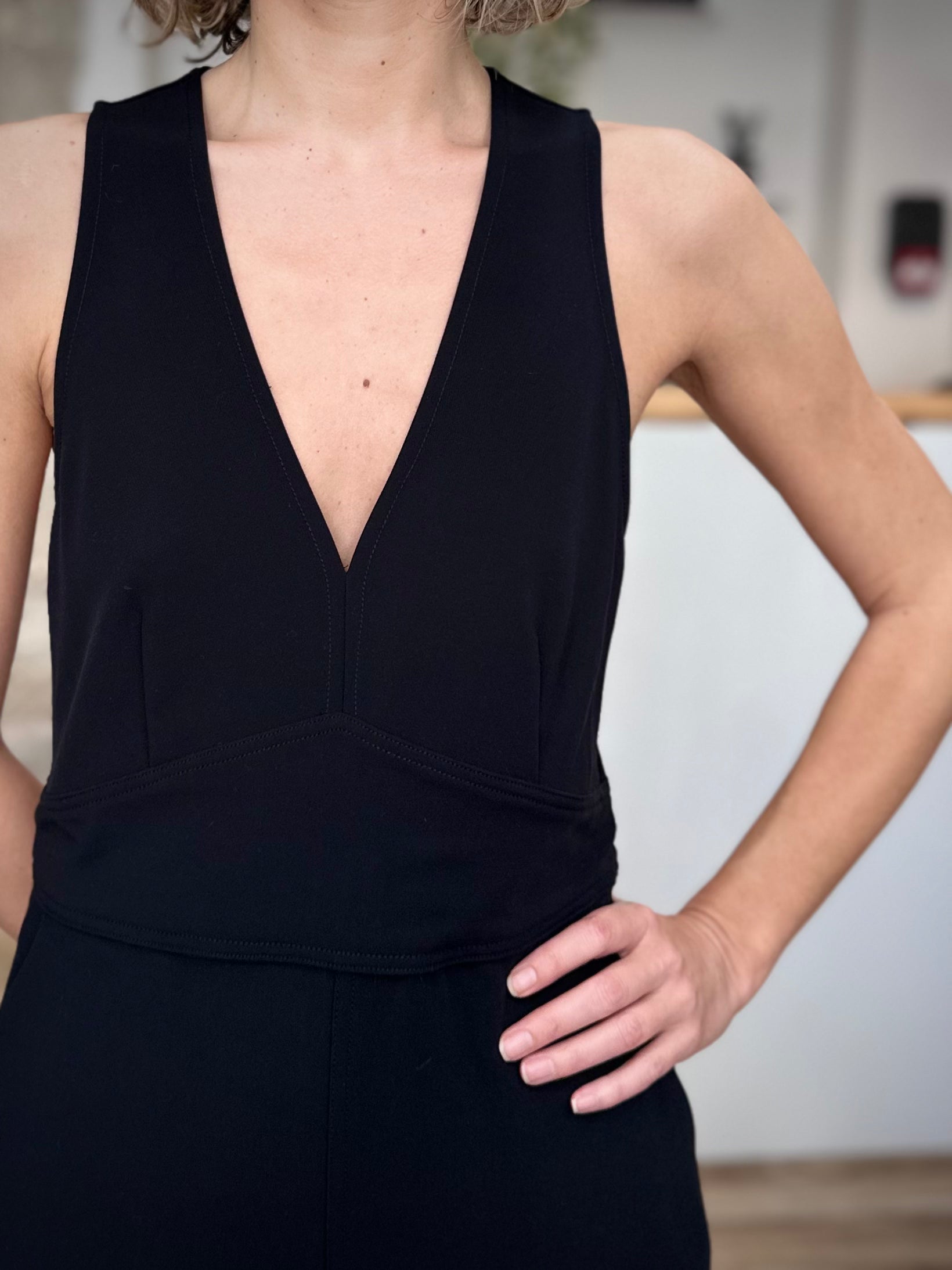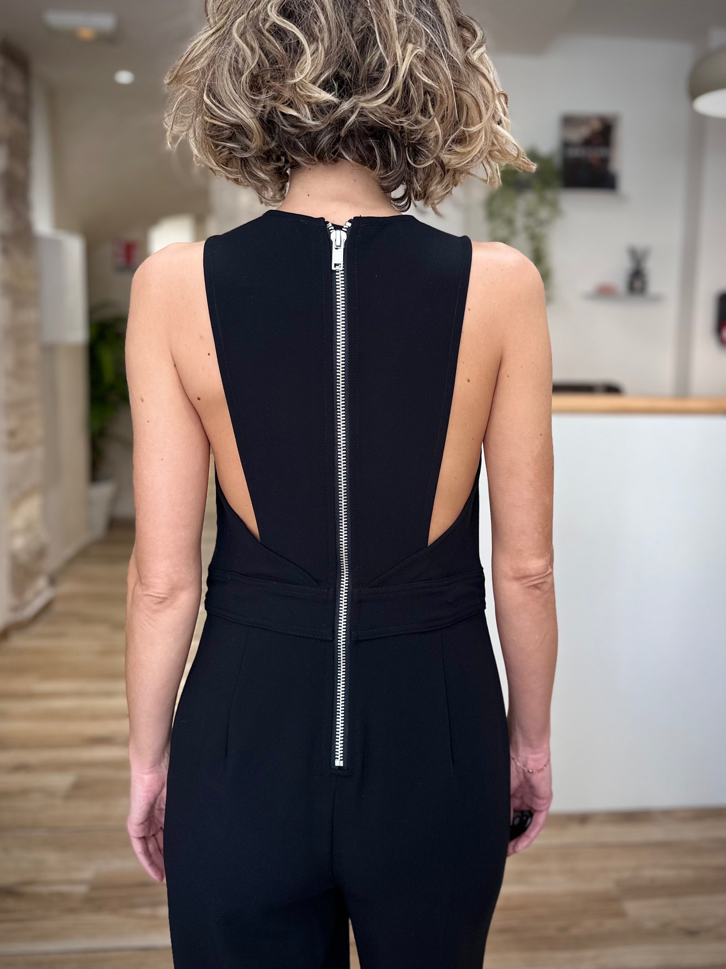 Confectionnée dans un mélange de polyester, viscose et élasthanne, la combinaison Orly offre une tombée fluide et un maintien impeccable. Son zip visible au dos apporte une touche contemporaine et graphique, tandis que les plis à la taille structurent le buste. Les poches italiennes invisibles ajoutent une note pratique, fidèle à l’esprit fonctionnel et stylé de la pièce.