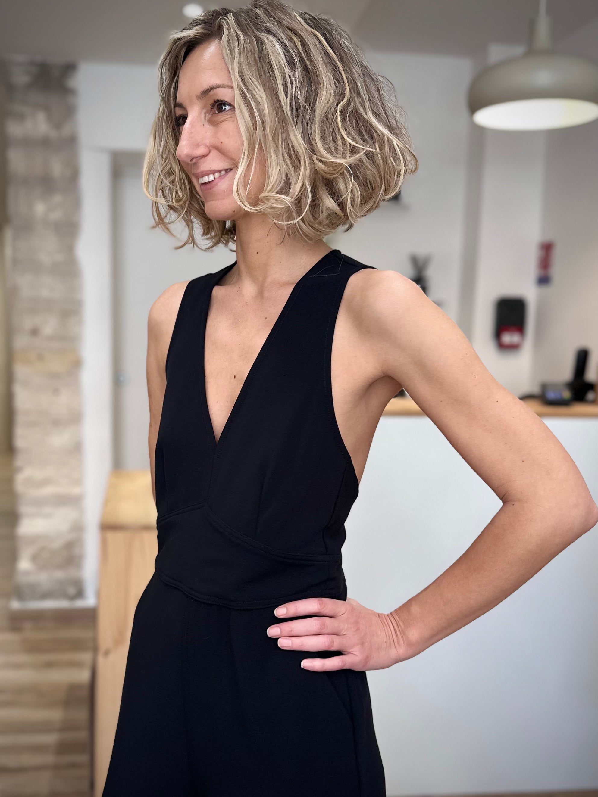 Pièce phare de la saison, la combinaison Orly noire attire tous les regards par sa coupe flatteuse et sa présence affirmée. Avec son décolleté en V, sa taille marquée et sa jambe évasée, elle dessine une silhouette élancée et féminine. C’est la tenue parfaite pour celles qui aiment conjuguer confort et allure.