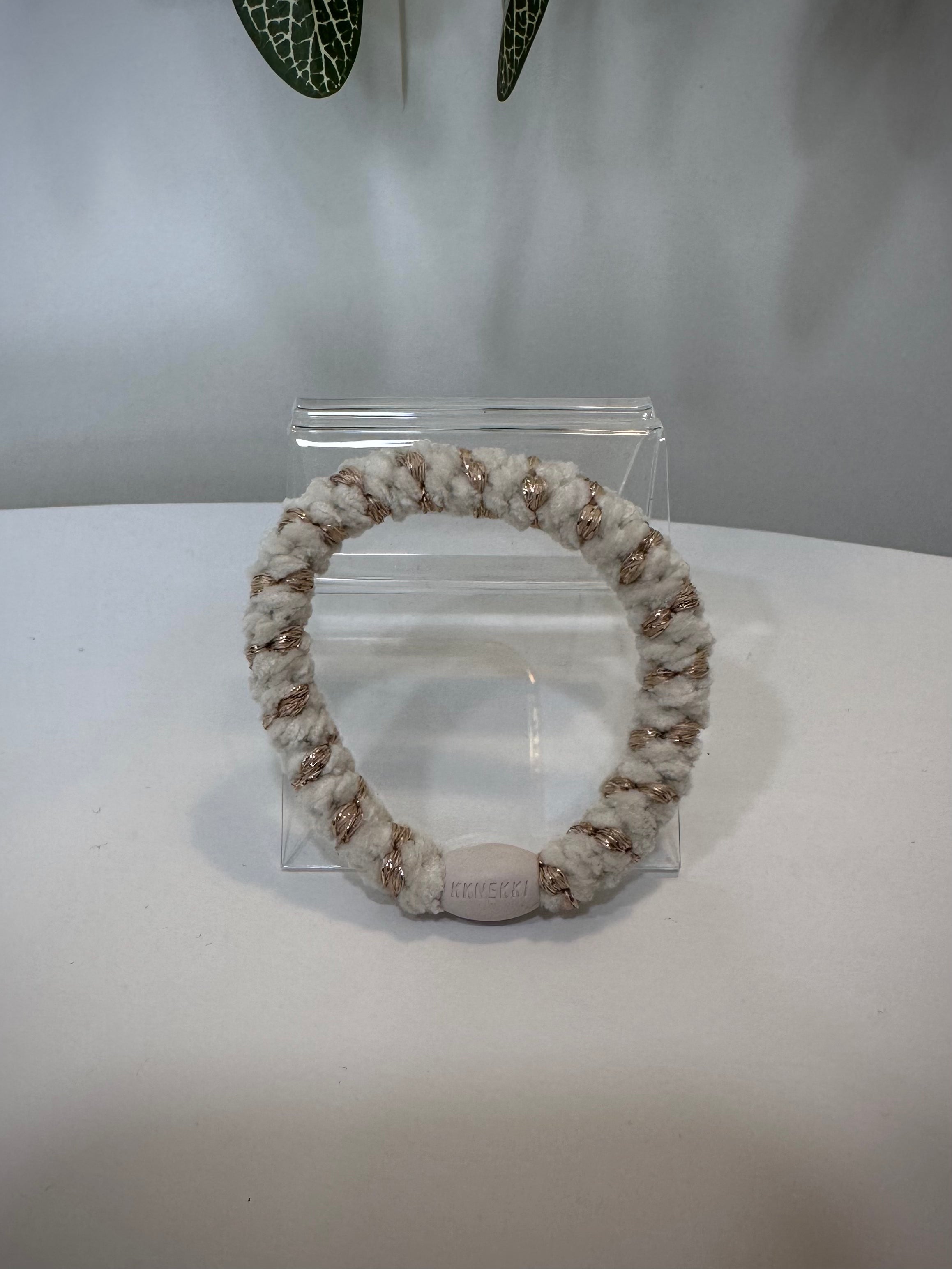 Élastique cheveux KKNEKKI – ivoire velours à rayures dorées