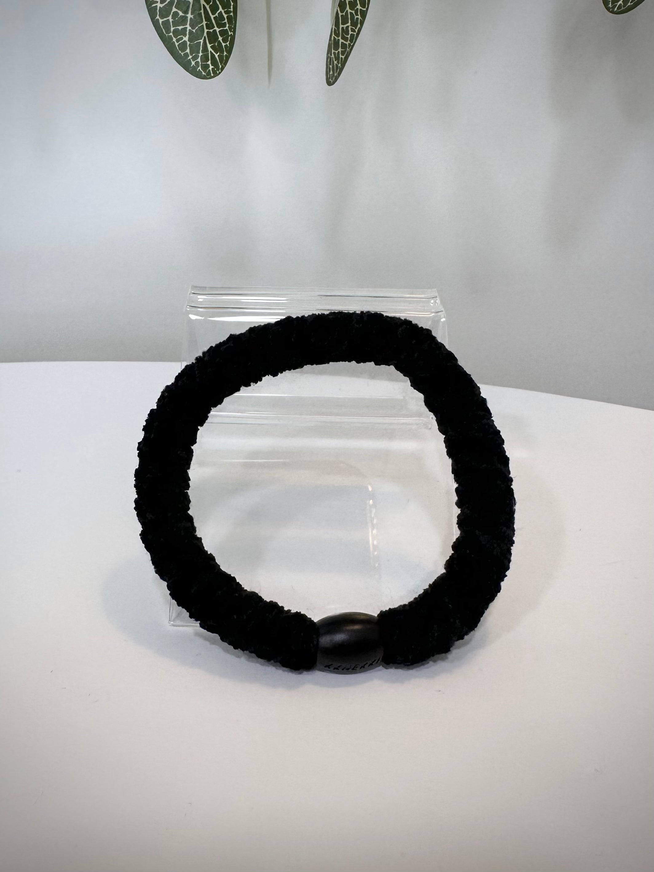 Apportez une touche de sophistication et de douceur à vos coiffures avec cet élastique cheveux Kknekki noir velours. Parfait pour sublimer une queue de cheval élégante, un chignon travaillé ou se porter autour du poignet comme un bracelet raffiné, il allie casual chic et élégance artistique.