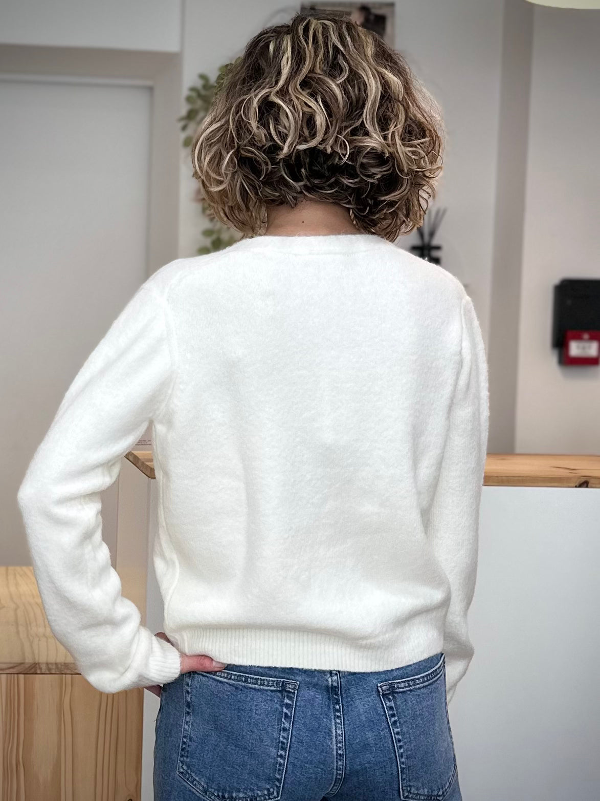 Sa maille moelleuse associe chaleur et confort sans alourdir la silhouette. Sa coupe droite s’adapte à toutes les morphologies et assure un tombé naturel, tandis que les boutons bijoux dorés signent une allure chic et délicate. Vous pouvez le porter ouvert ou fermé, selon votre envie : devant pour un esprit cosy, ou inversé pour un look plus affirmé. Un vrai caméléon du dressing.