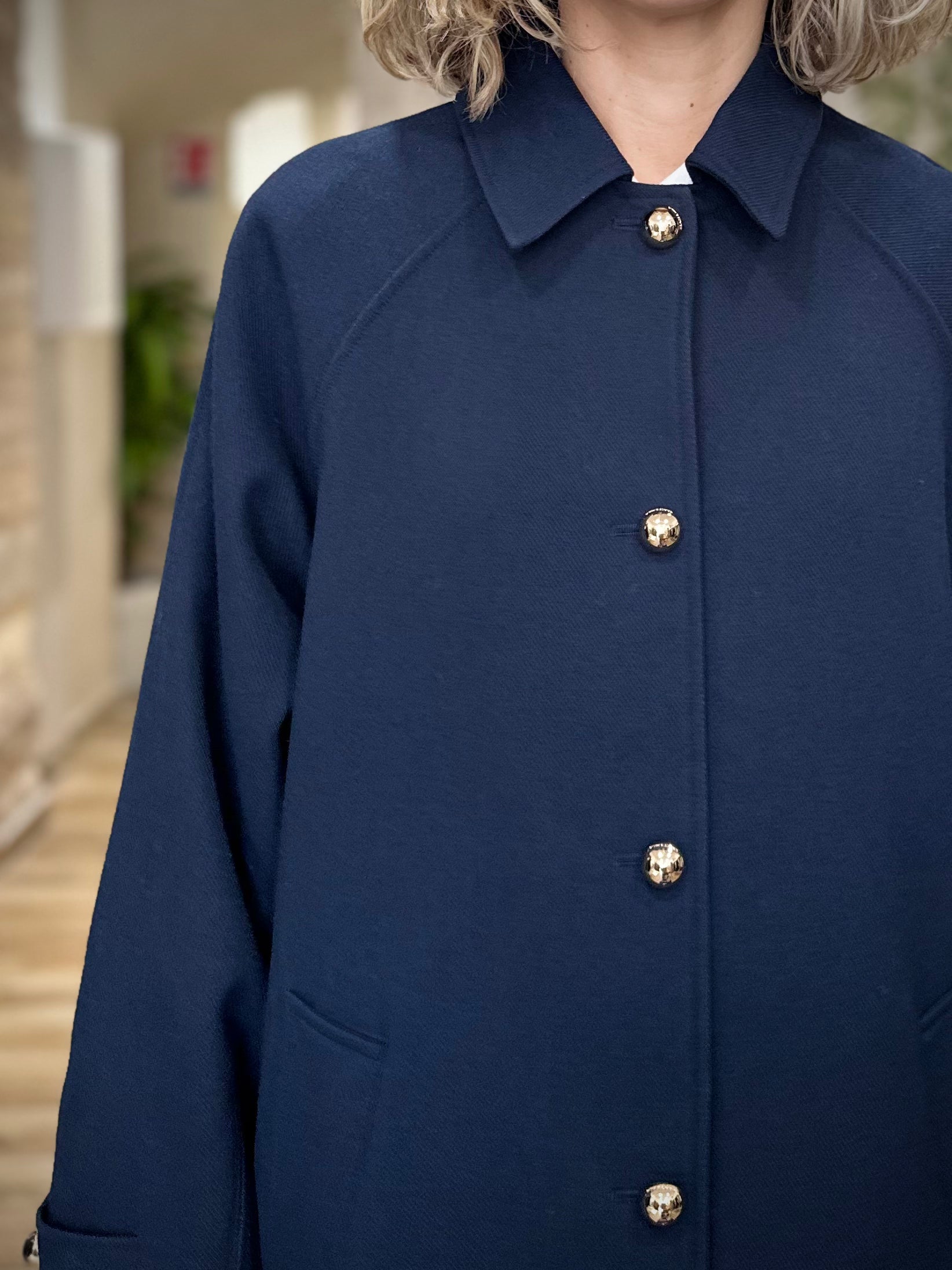 Sa coupe droite structure la silhouette tout en restant fluide. Les manches raglan adoucissent l’épaule pour un tombé naturel et confortable. Le col italien, les poches plaquées et la fente au dos apportent une touche de classicisme revisité. Le tout est rehaussé de boutons dorés gravés G&M, signature chic et lumineuse qui capte subtilement la lumière. La ceinture amovible ton sur ton permet de marquer la taille selon vos envies : nouée pour souligner la ligne, ou laissée libre pour un effet plus décontracté.