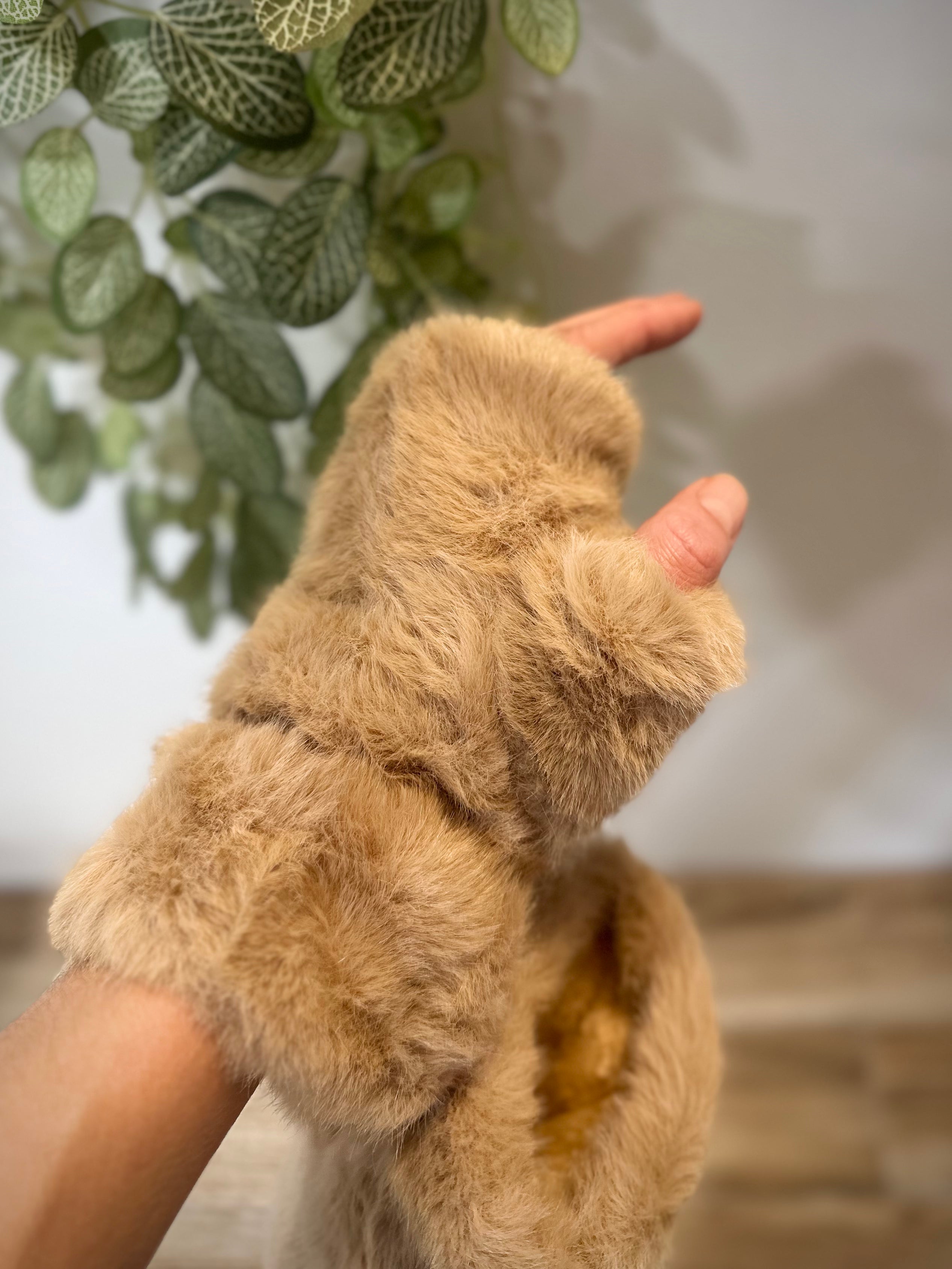 À l’heure où les journées fraîchissent et où la lumière adoucit les silhouettes, les mitaines Luna enveloppent vos mains d’une chaleur délicate. Leur fausse fourrure camel, douce comme une brise tiède, apporte une note cosy et féminine qui sublime chacun de vos gestes. Une pièce qui évoque les matins d’hiver lumineux, les balades en ville et ces moments suspendus où l’on aime simplement se sentir bien.
