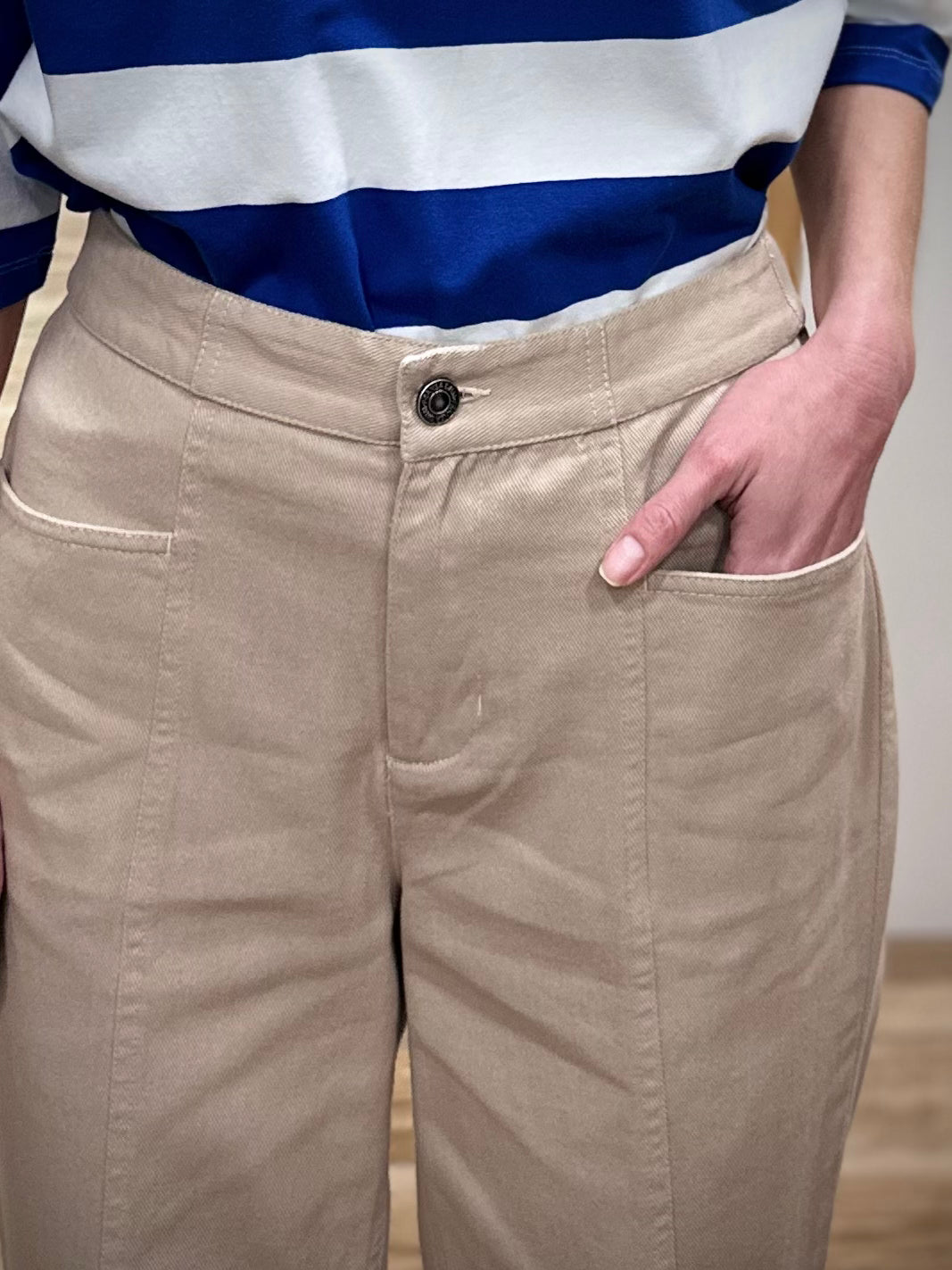 Le pantalon LIORA incarne cette élégance naturelle que l’on aime adopter dès les beaux jours. On l’imagine porté lors d’une matinée ensoleillée, un café en terrasse, une chemise légère rentrée à la taille et des pas assurés. Une pièce qui accompagne vos journées avec douceur, sans jamais sacrifier le style.