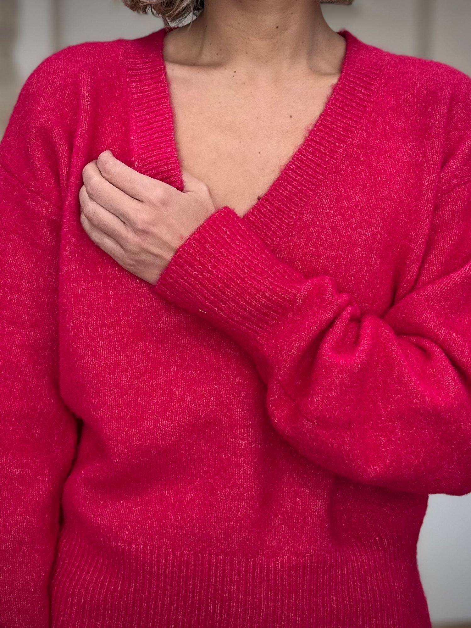 - Détails : col V plongeant, poignets et base côtelés, maille souple et dense