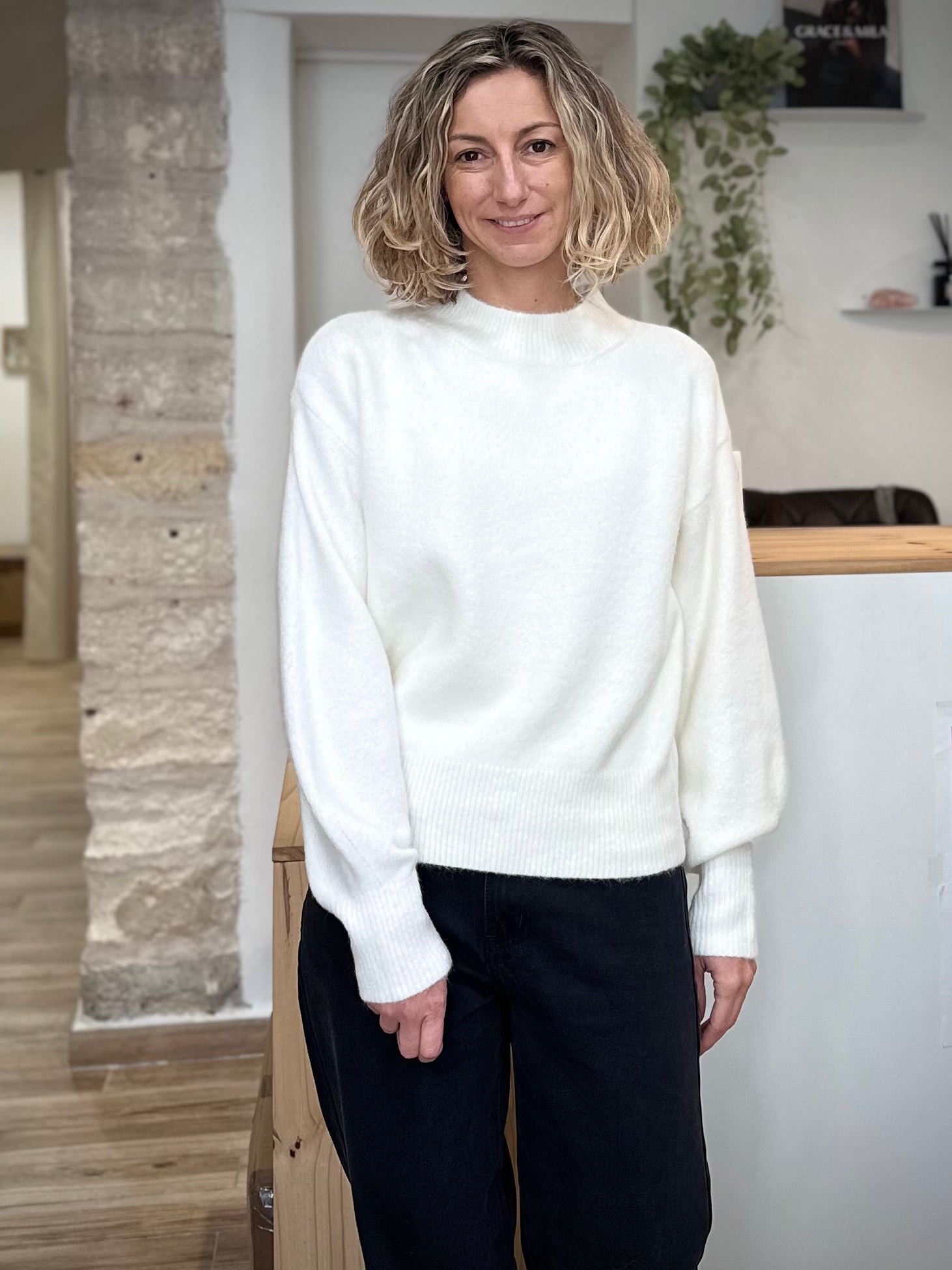 Ce pull se prête à toutes les envies : porté sur une chemise pour un look urbain soigné, sur un pantalon fluide pour une allure minimaliste, ou simplement sur un jean pour vos journées cocooning. Il s’impose comme un basique élégant, celui qui rend chaque tenue plus douce, plus lumineuse, plus vous.