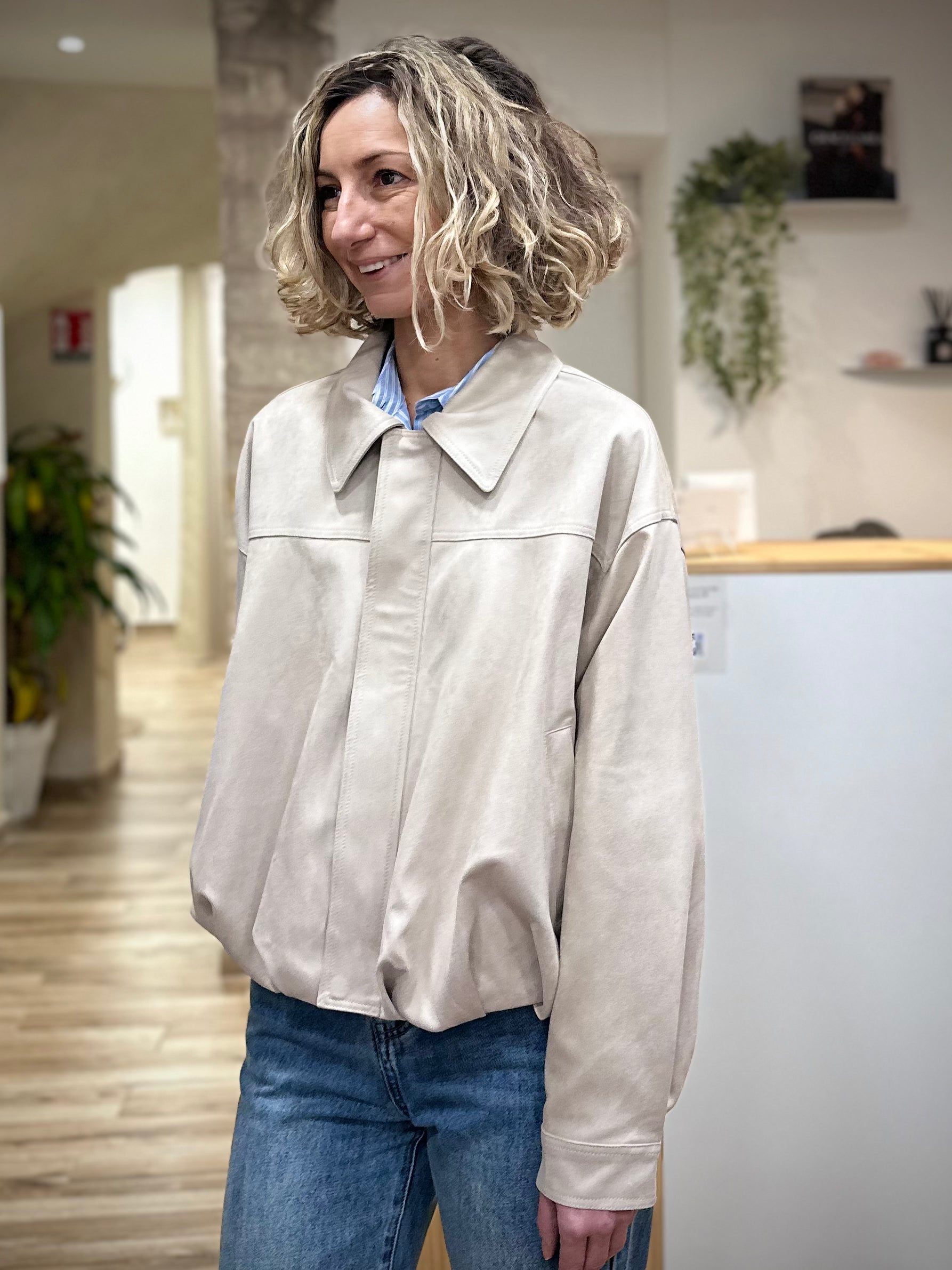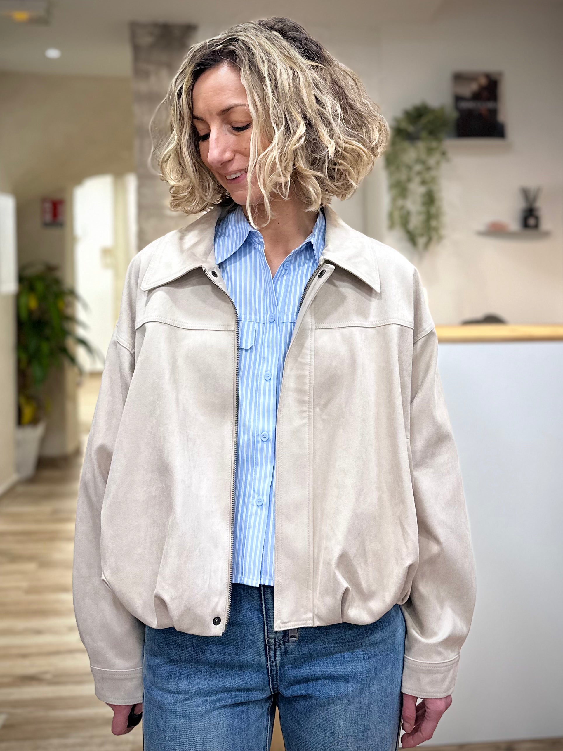 La veste bomber VERVE s’impose comme la pièce idéale pour accompagner les journées de mi-saison avec style et caractère. On l’imagine en début de matinée, portée sur une tenue simple, apportant instantanément cette touche mode effortless qui fait toute la différence. Une veste pensée pour celles qui aiment les silhouettes modernes, à la fois douces et affirmées.
